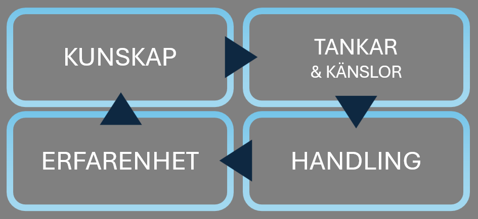 Det är ny kunskap som ger oss nya tankar och känslor. Dessa tankar påverkar sedan vårt agerande i olika situationer. Vilket i sin tur skapar nya erfarenheter. Våra nya erfarenheter bidrar slutligen till ny kunskap och så fortsätter det. Får vi exempelvis inte in någon ny kunskap går autopiloten igång igen.